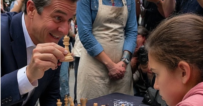 Mateo sa začal potichu rozplakať. To bola pre Lucíu posledná kvapka. Dvanásťročná dievčina ignorovala matkine varovania, postavila sa, schmatla svoju starú magnetickú šachovnicu a vykročila ku kruhu bohatých nápadníkov. Dav cúvol, prekvapený, keď videl dcéru upratovačky, ako sa k nemu blíži s takým odhodlaním.